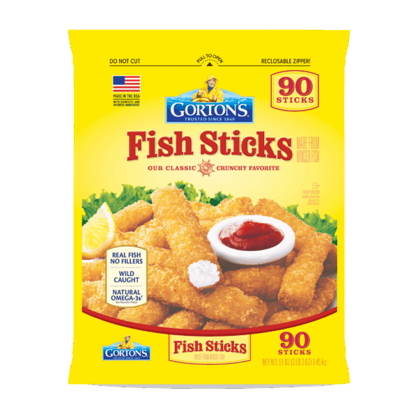 A Gorton’s classic, our wild-caught Alaskan Pollock fish sticks are coated in a crunchy golden breading.