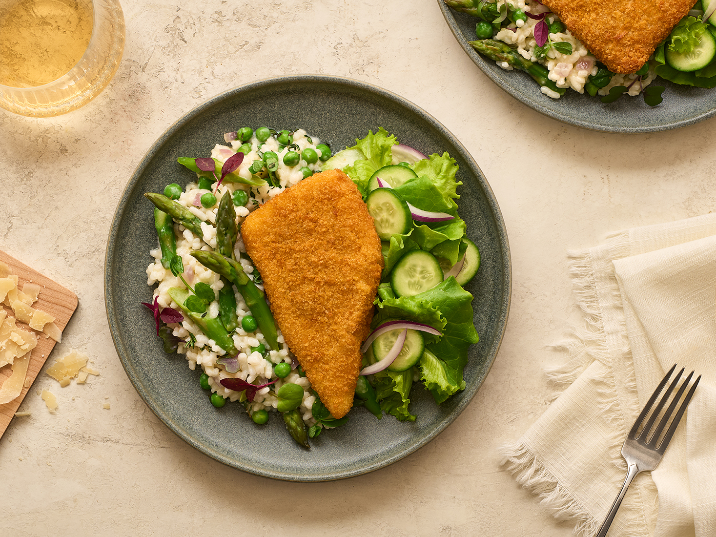 The secret to a gourmet dinner made simple? A no stir, oven-made risotto, and deliciously easy Panko Haddock fillets from Gorton’s.
