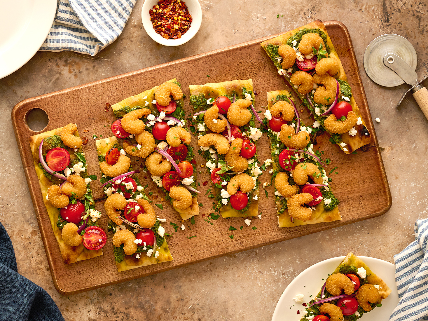 This crispy shrimp flatbread recipe using Gorton’s Popcorn Shrimp is easy, flavorful, and perfect for sharing—but only if you want to.